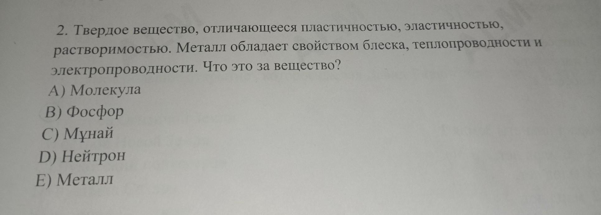 Указанные вами свойства (пластичность, эластичность, растворимость, блиск, теплопроводность и электропроводность) характерны для металлов.