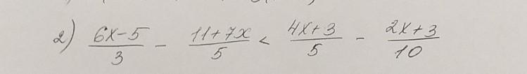 2. (6x - 5)/3 - (11 + 7x)/5 < (2x)/5