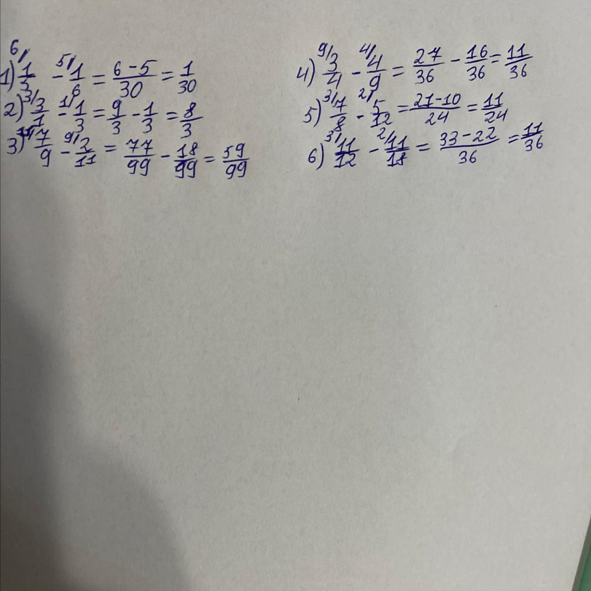 СРОЧНО ПОЖАЛУЙСТА ЛЮДИ ПОМОГИТЕ С РЕШЕНИЕМ ПЛИЗ !!!! 426: найдите значения выражений : 1) 1/5 - 1/6; 2) 3/1 - 1/3; 3) 7/9 - 2/11; 4) 3/4 - 4/9; 5) 7/8 - 5/12; 6) 11/12 - 11-18