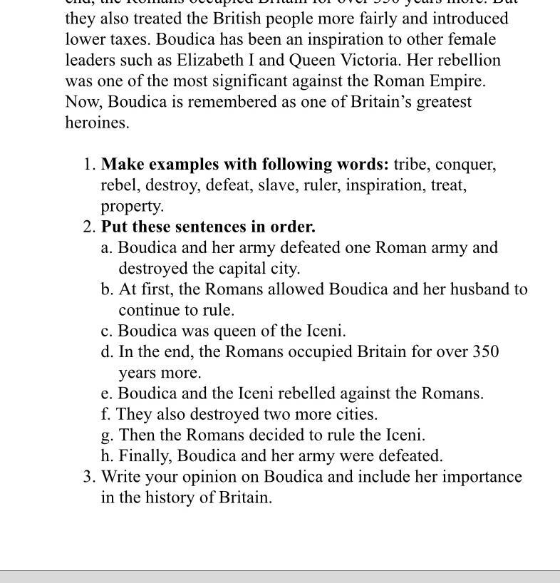 b. At first, the Romans allowed Boudica and her husband to continue to rule.
