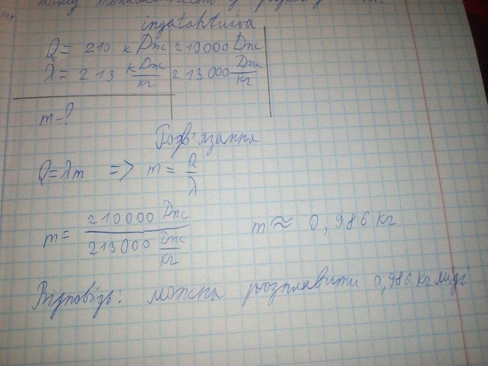 Скільки міді, взятої при температурі плавлення, можна розплавити, передавши їй кількість теплоти 210 кДж?