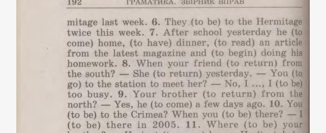 1: they been, 2: he came home 3: to have 4: read. 5: begin 6: returning 7: returned 8 going 9 being 10 returned 11 came 12 being 13 been 14 been