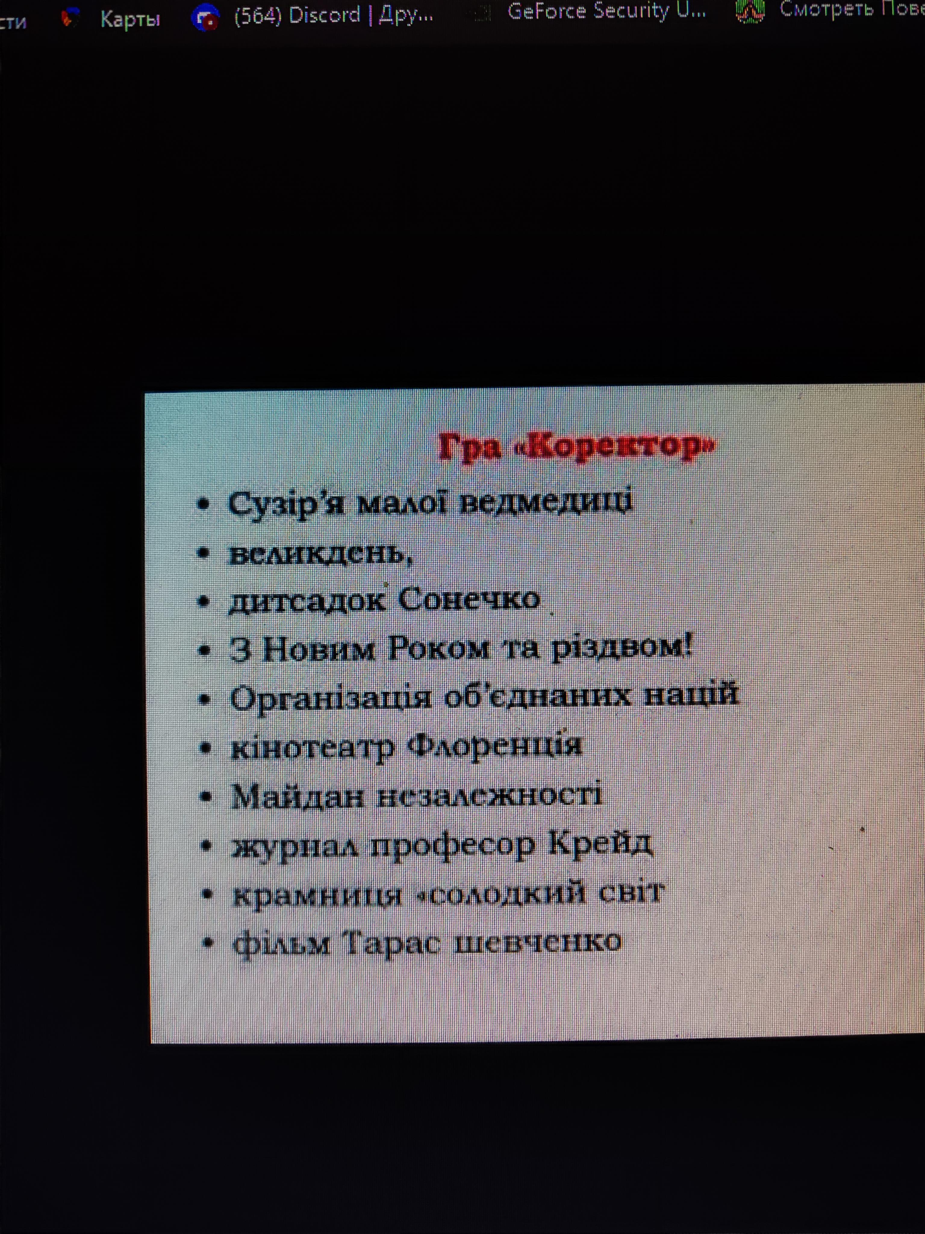 1 сузір'я Малої Ведмедиці 2 Великдень 3 дитсадок "Сонечко" 4 з Новим роком та Різдвом! 5 Організація Об'єднаних Націй 6 кінотеатр"Флоренція 7 Майдан Незалежності 8 журнал " Професор Крейда" 9 крамниця "Солодкий світ"10 фільм "Тарас Шевченко"