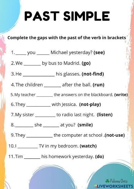 поставити дієслово в правильній формі у Past Simple (правильне чи неправильне дієслово) пж даю 20 балав