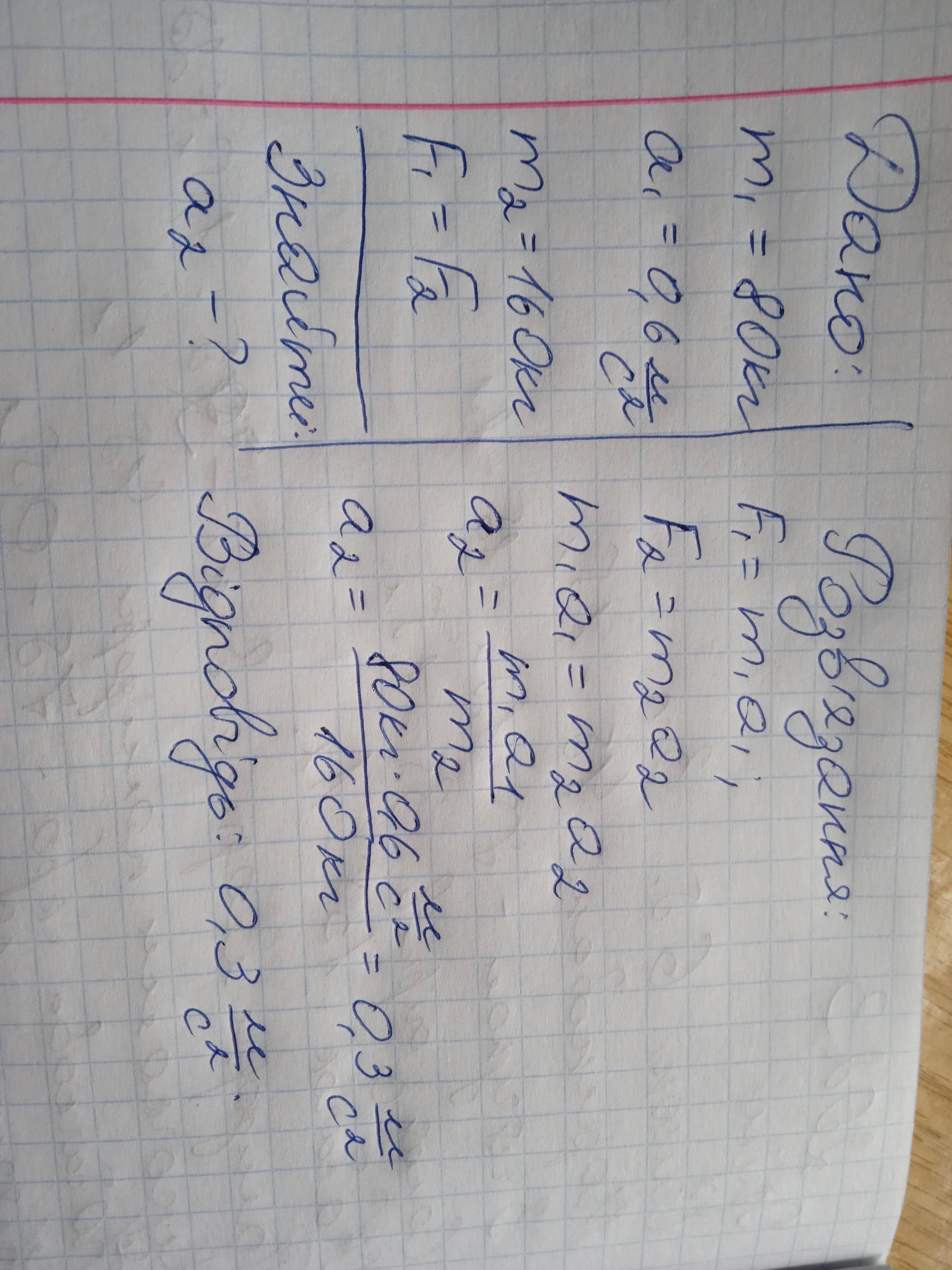 Тіло масою 80 кг рухається з прискоренням 0,6 м/с² під дією певної сили. З яким прискоренням рухатиметься тіло масою 160 кг під дією тієї самої сили?