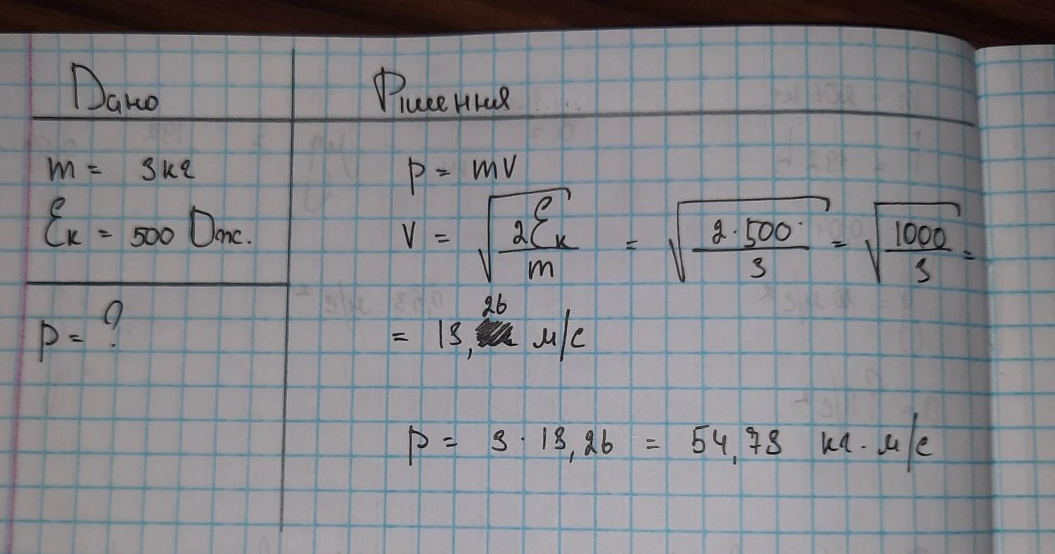 Найди импульс падающего с определенной высоты тела 3кг, если его кинетическая энергия в момент соударение с поверхностью равна 500Дж