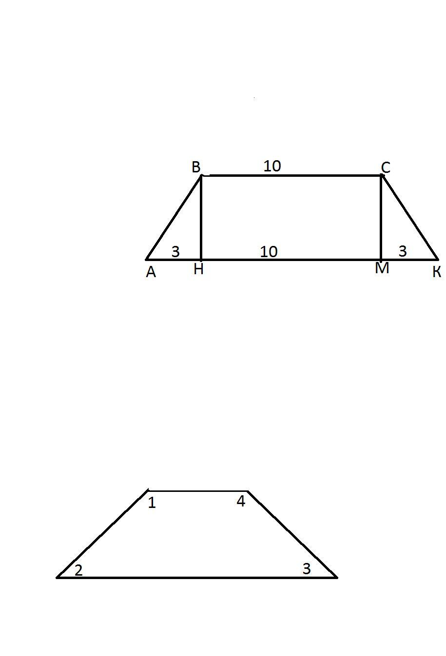 Дано: АВСК - трапеція, АВ=СК, ВС=10 см, ВН і СМ - висоти, АН=3 см.