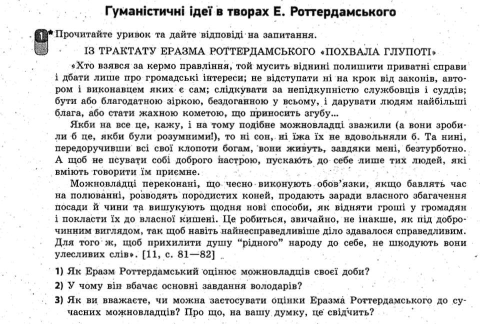 1) Еразм Роттердамський оцінює можновладців своєї доби негативно. Він вказує на те, що багаті і владарі мають відмовитися від своїх особистих справ та зосередитися на служінні громадським інтересам. Він критикує їх за непідкупність службовців і суддів, а також за відсутність справжнього служіння народу.