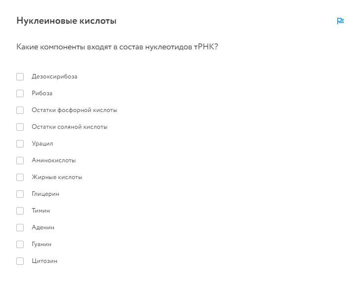 Первые три - это молекулы-субъединицы, а последние 4 - это нуклеиновые основания и методисты могли иметь виду только первые три варианта ответа, но я бы ответил вот так.