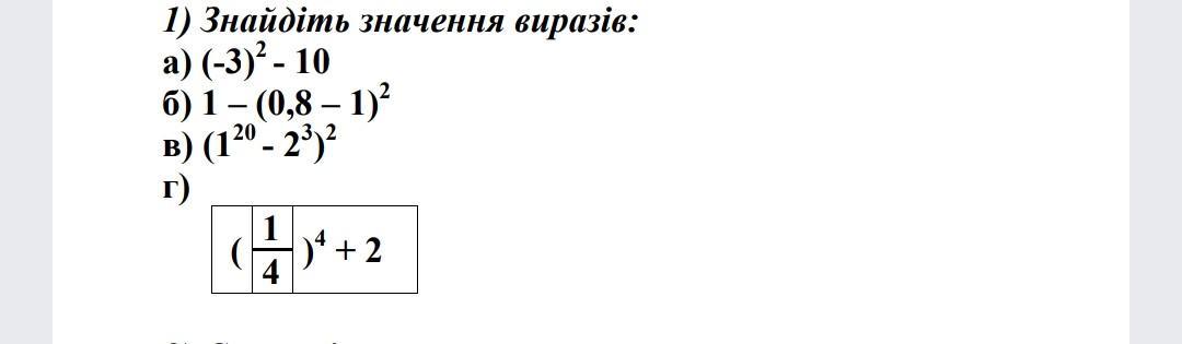 г) (1/4)⁴+2=1/256+2=2 1/256
