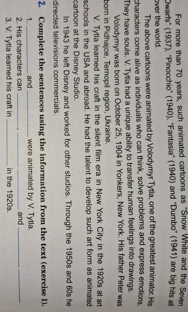 3)V.Tytla learned his craft in New York city in the 1920s.