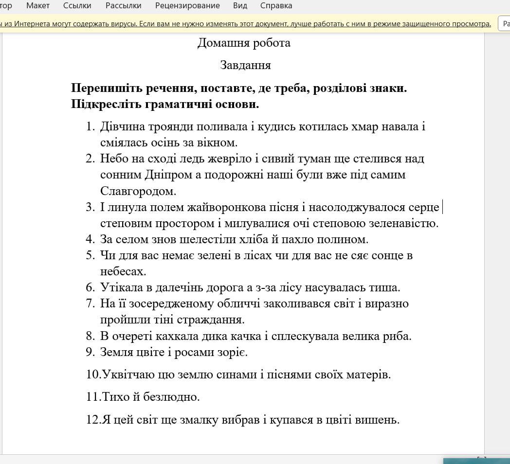Перепишіть речення, поставте, де треба, розділові знаки. Підкресліть граматичні основи.