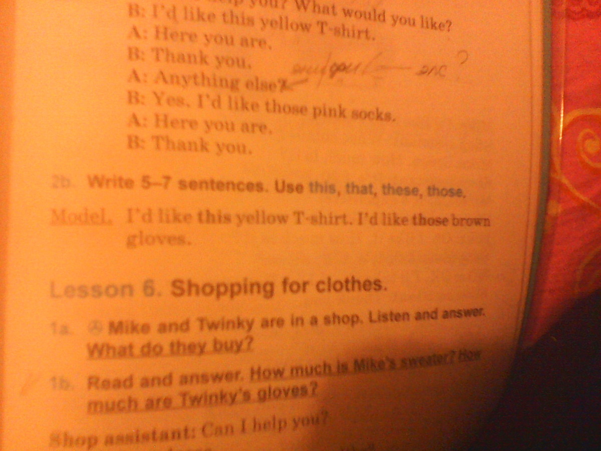 Нужно написать 5-7 предложений используя this, that, these, those. Например I'd like that blue pen.