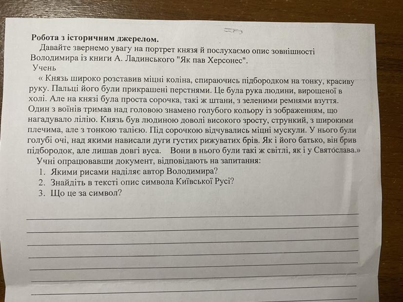 1. Автор наділяє Володимира княжними, аристократичними рисами, зокрема звертає увагу на його вигляд, мускули, голубі очі та вигляд, що вказує на виховання в княжій холі.
