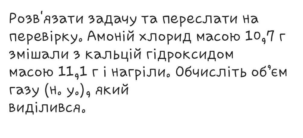 ну якщо амоній хлорид масою 10,7 а кальцій гідроксид масою 11.1 а тут питається об'єм газу а газ точна буде легше то наверняка ділення.