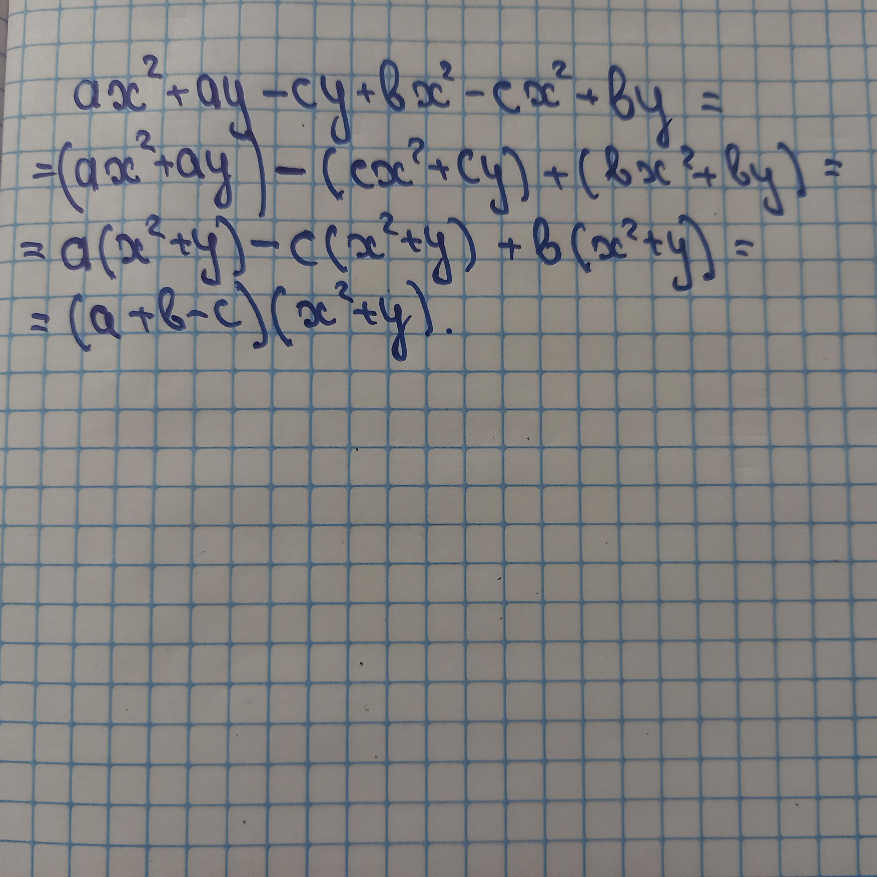 ax²+ay-cy+bx²-cx²+by = ax²+bx²-cx²+ay+by-cy = x²(a+b-c)+у(a+b-c) =