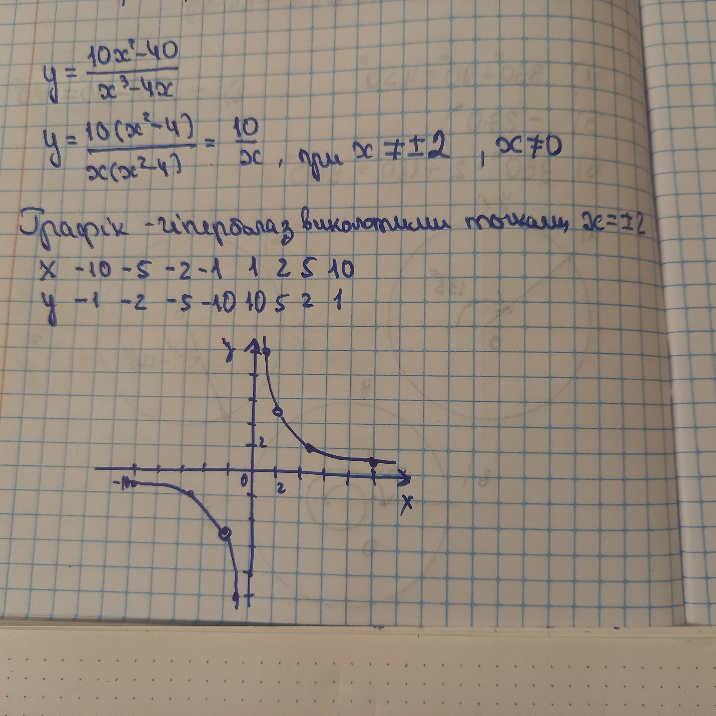 Відповідь: графік- гіпербола з виколотими точками х=2, х=-2.