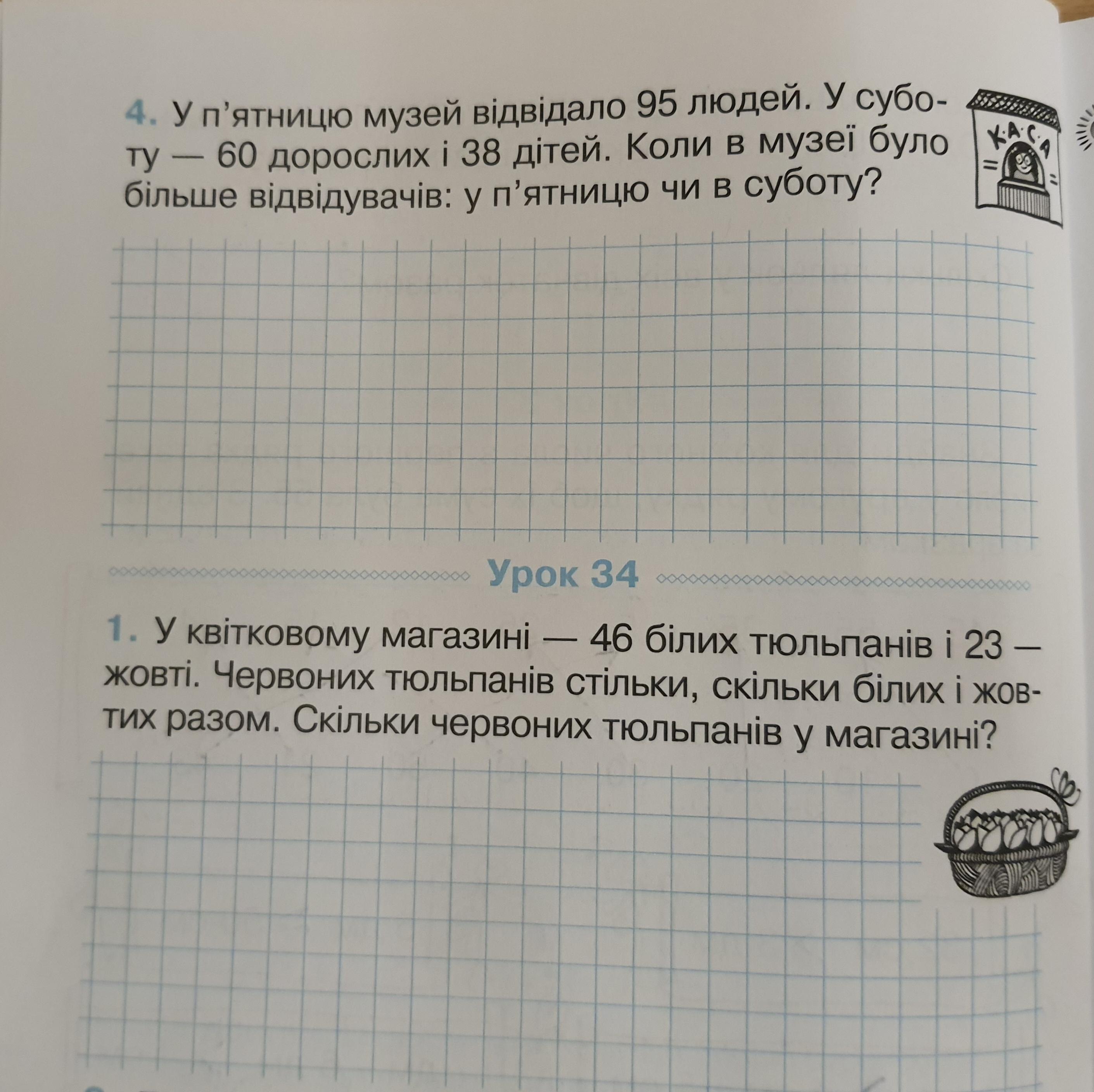 впр 4) 46+23 = 69 - білих і жовтих тюльпанів разом