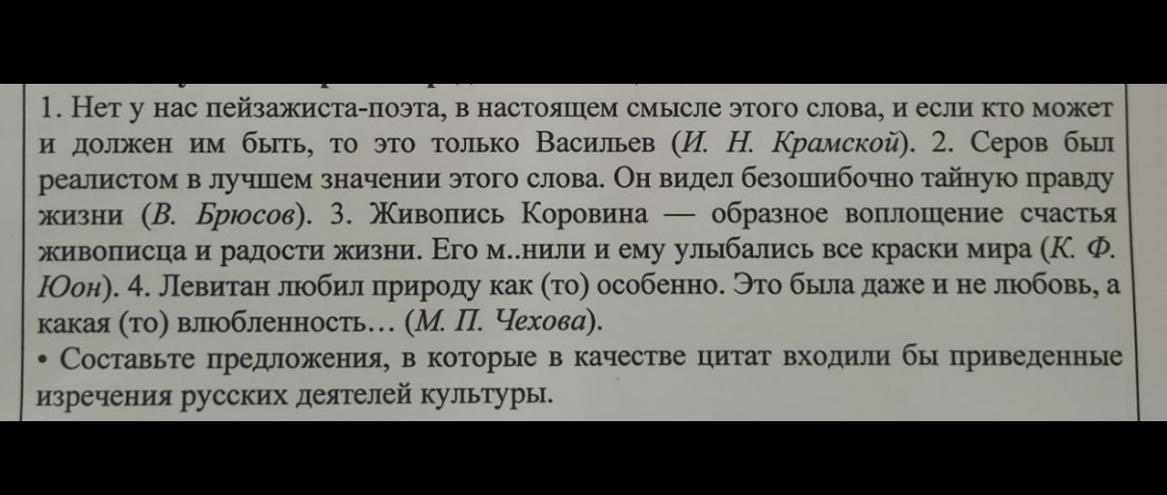 Составьте предложения, в которые в качестве цитат входили изречения русских деятелей культуры.