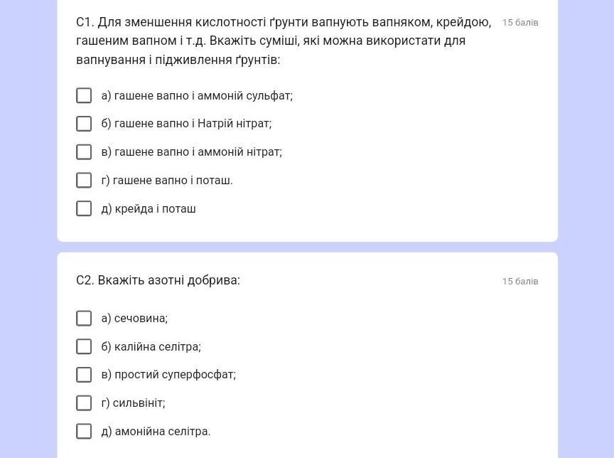 С2. а) сечовина, д) амонійна селітра