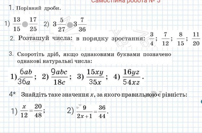 Ответ:( 2 )это сначала ¾ потом 7,12 потом 8,15 потом 11,20 (1) 13/15 >17/15 5/27>7/36. (4) 1