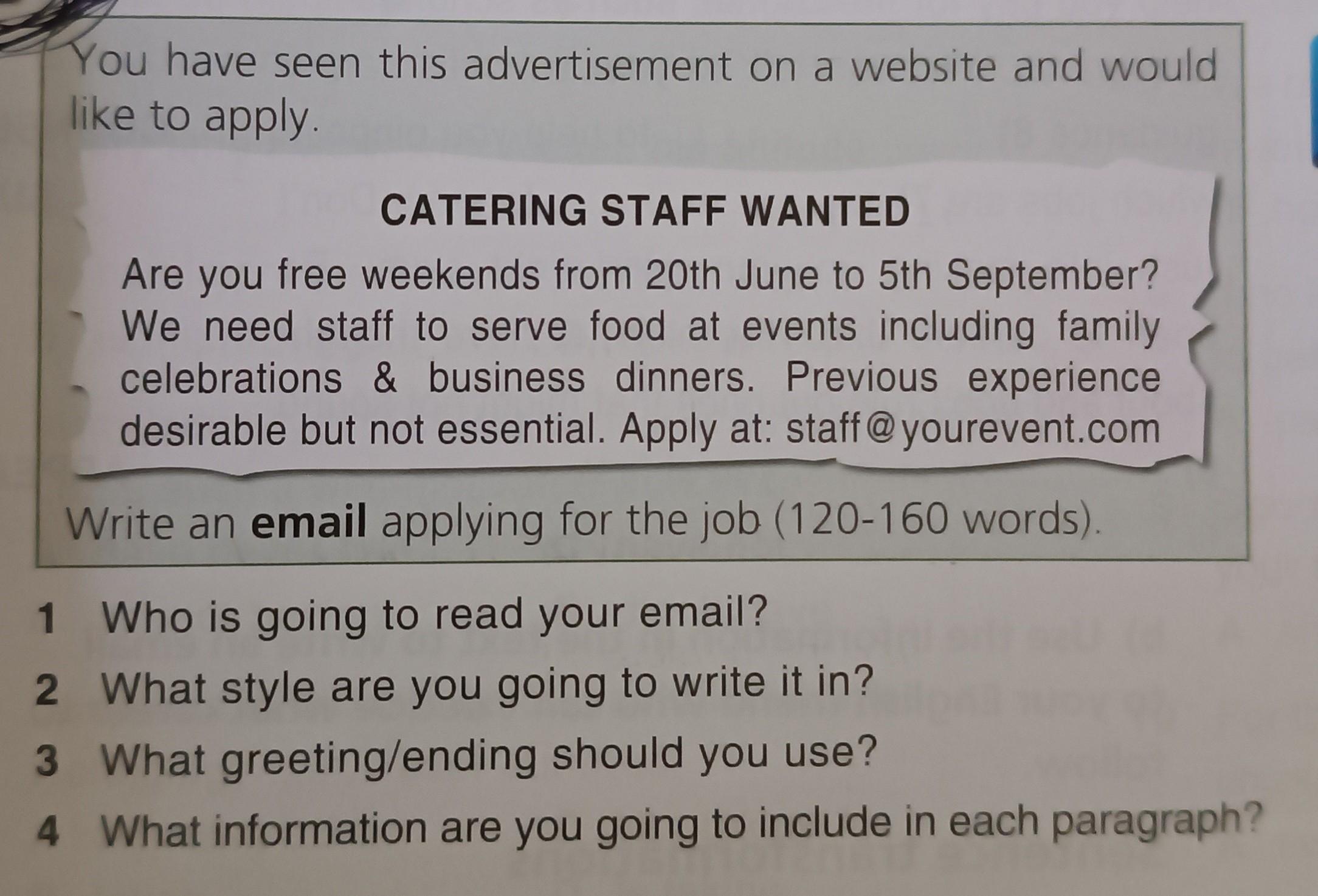 In the first paragraph, I will introduce myself and express my interest in the catering staff position. I will mention where I saw the advertisement and convey my availability for the specified dates.