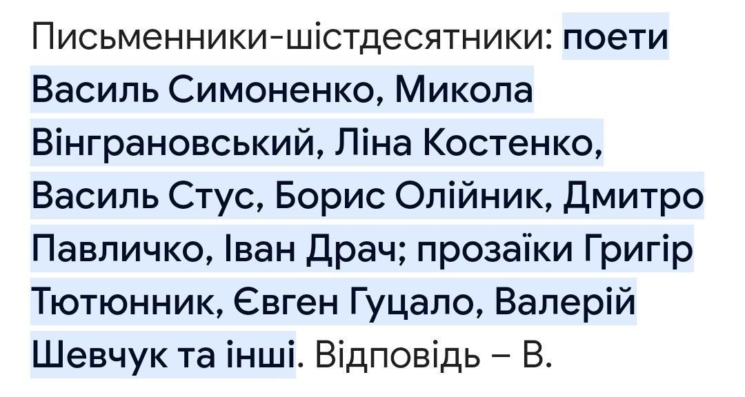 Відповідь: якщо не посилаюсь,то Г Максим Рильський.Нп фотографії будуть письменники які відносяться до шістдесятників.