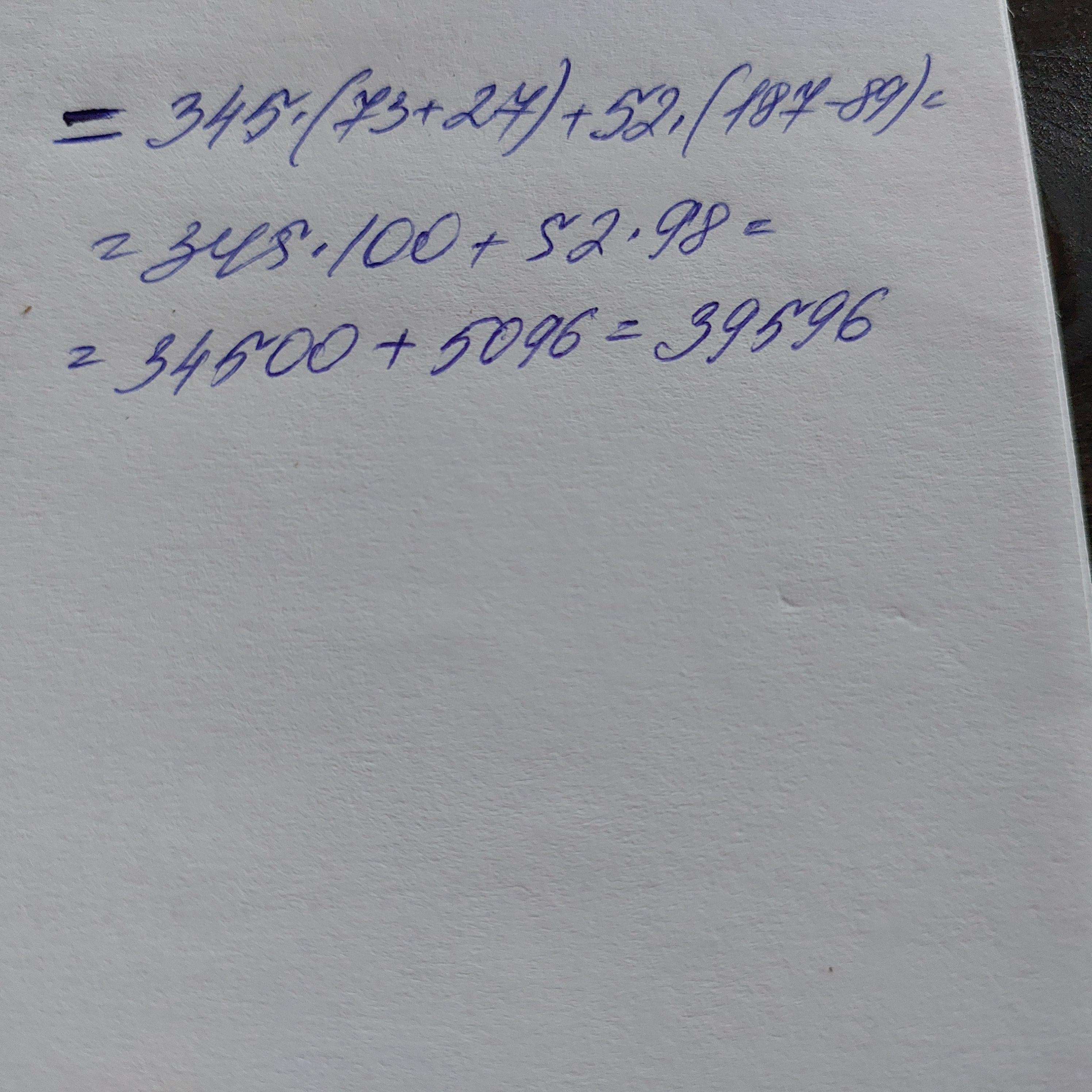обчисліть зручним способом 73•345+345•27+52•187-89•52 помогите пожалуйста