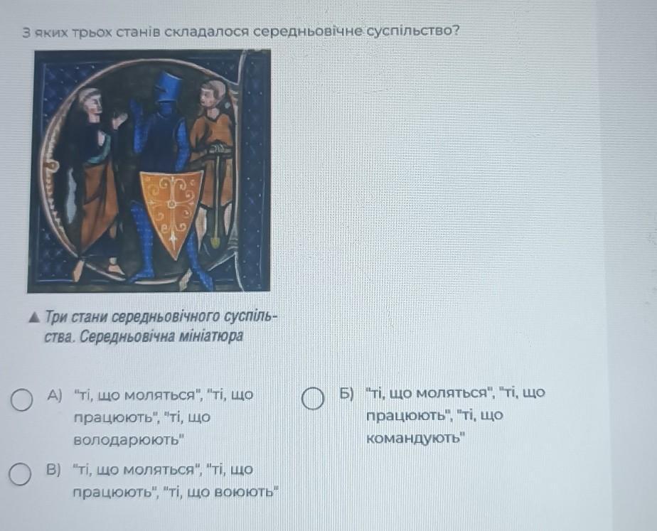 Другий стан отримав назву "ті, що воюють". До нього входили глави держав, як-от імператори, королі та великі князі, а також представники знаті та земельної аристократії, як-от герцоги, графи, віконти та барони. Цей стан також включав дворян, до яких належали лицарі та шевальє, також відомі як "кавалери".