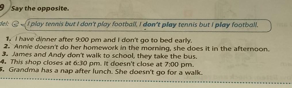 - Annie does her homework in the morning, she doesn't do it in the afternoon.