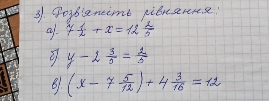 а) 7 1/2 + х = 12 2/5