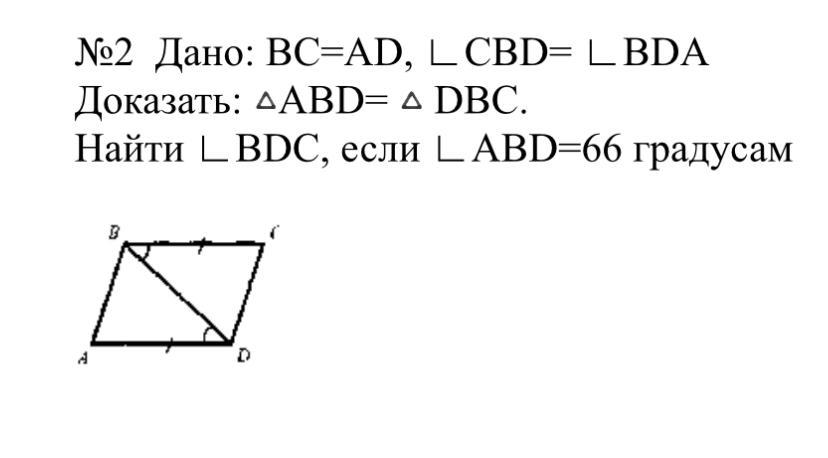 2. \( \angle BVD = \angle VDA \) (по условию, \( \angle CVD = \angle BDA \), а вертикальные углы равны).