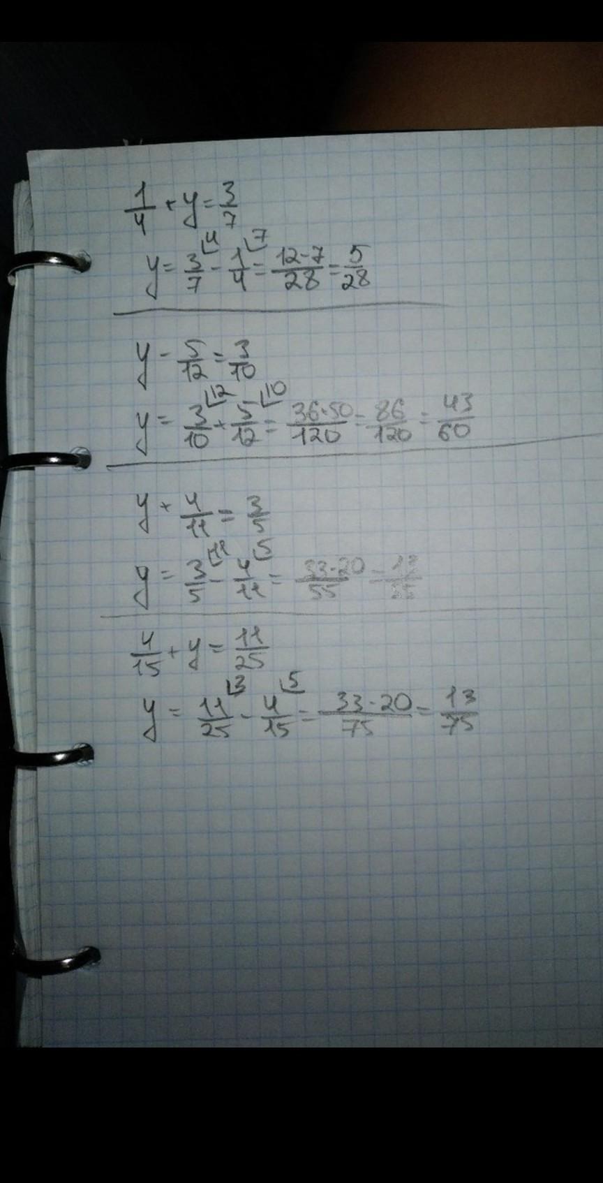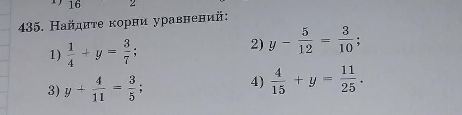 435. Найдите корни уравнений: 1) +9 y 3) У + 11 - = 3 /со 3 5 3 15 5 3 2) у - 12 + y = = 10' 11 25