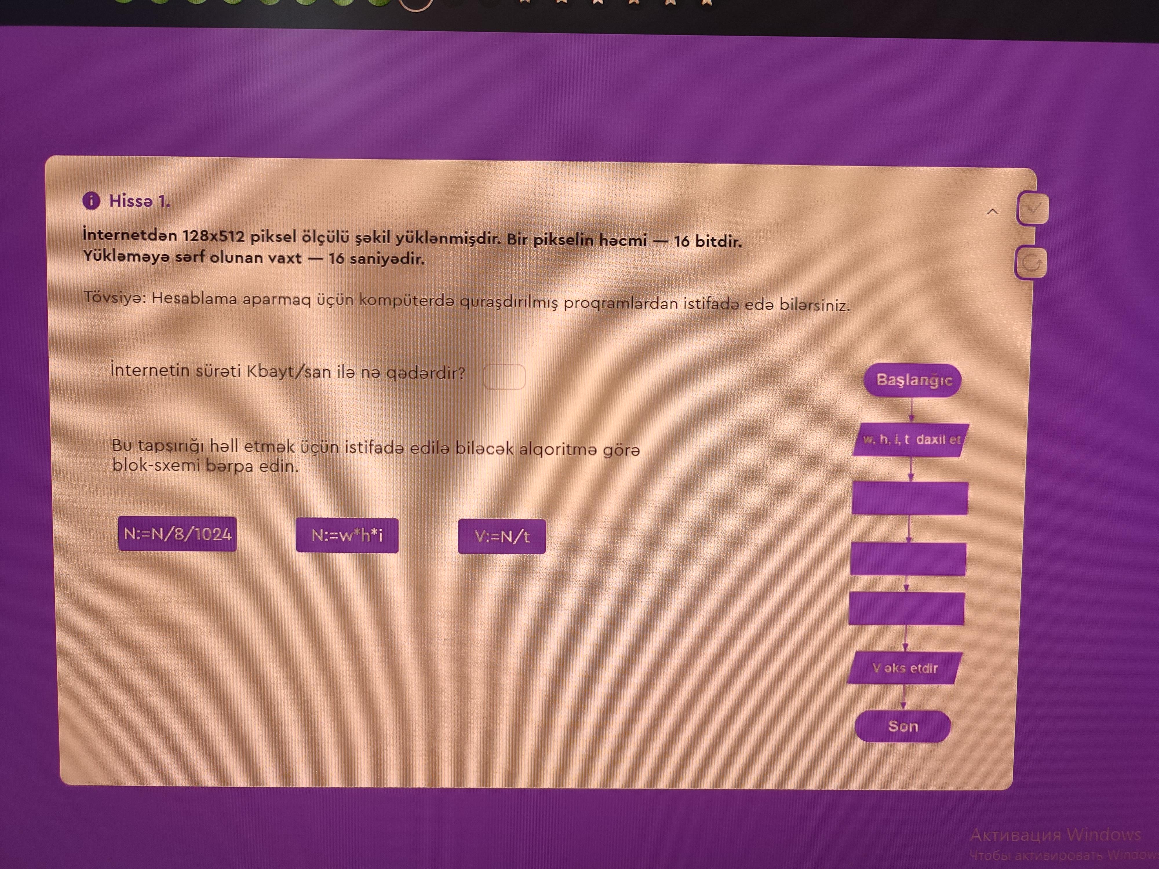 V=128÷16=8 Кбайт/сек скорость интернета