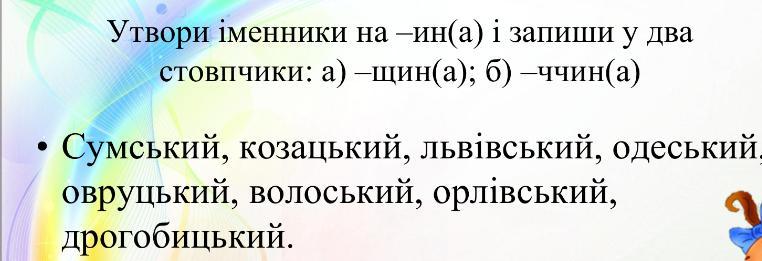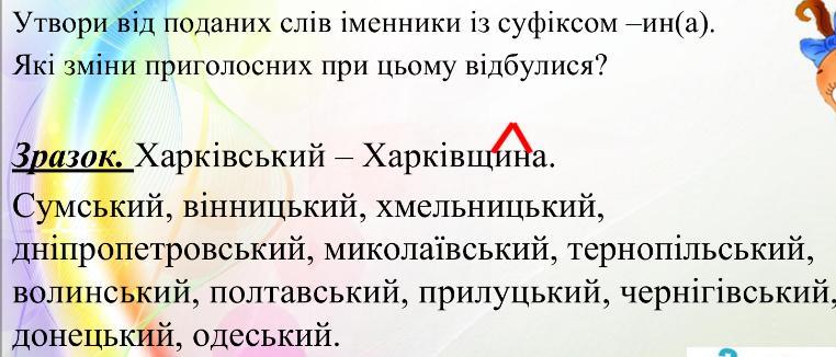 До назв областей додаємо ч(ин)а, щ(ин)а, та змінюємо їх назви щоб підійшли суфікси "ин" до областей.