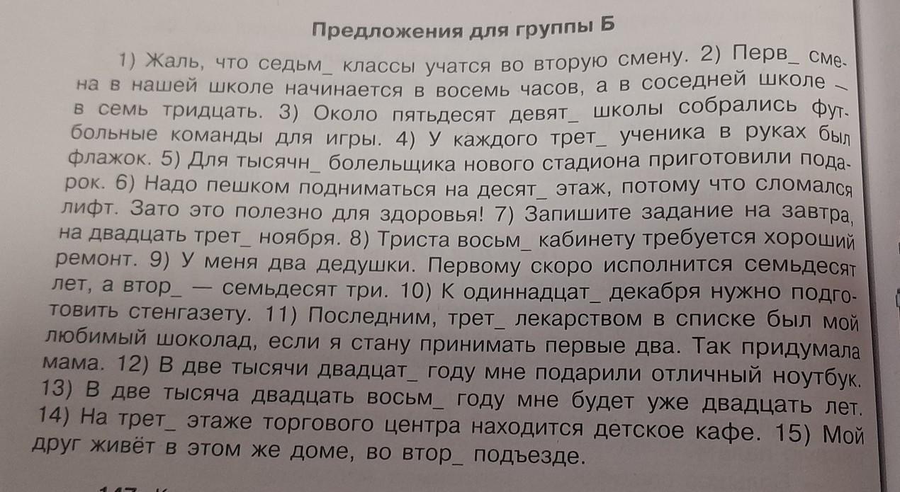 1 седьмые 2 первое 3 девятой 4 третьего 5 тысячных 6 десятый 7 третья 8 восьмому 9 второму 10 одиннадцатое 11 третьем 12 двадцатом 13 восьмом 14 третьем 15 втором