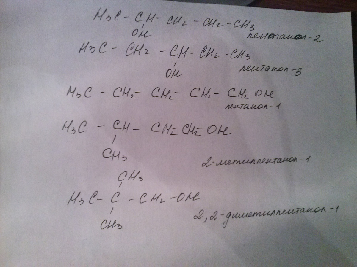 написать структурные формулы изомерных спиртов состава с5н11он и назвать их по систематической номенклатуре (2 изомера по положению функциональной группы и 2 изомера по строению углеводородного скелета)