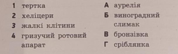 установіть відповідність між структурами та представниками безхрибетних тварин,яким вони притаманні