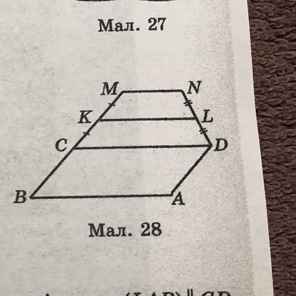 Объяснение:АВ//СД,СД//КL(средняя линия трапеции)значит АВ//КL