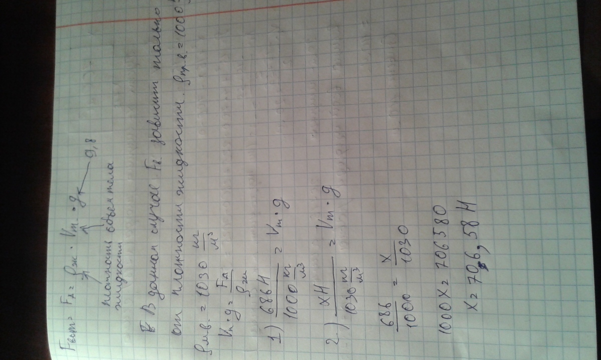 на тело погруженное в пресную воду действует выталкивающая сила равная 686 Н КАКОВА будет выталкивающая сила морской воды?