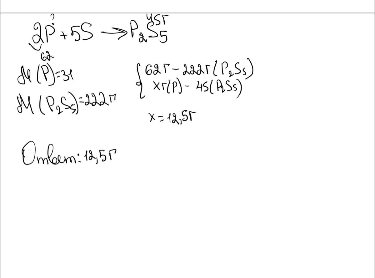 Сколько фосфора необходимо взять для реакции с серой , если известно, что при этом образовалось 45г сульфида фосфора