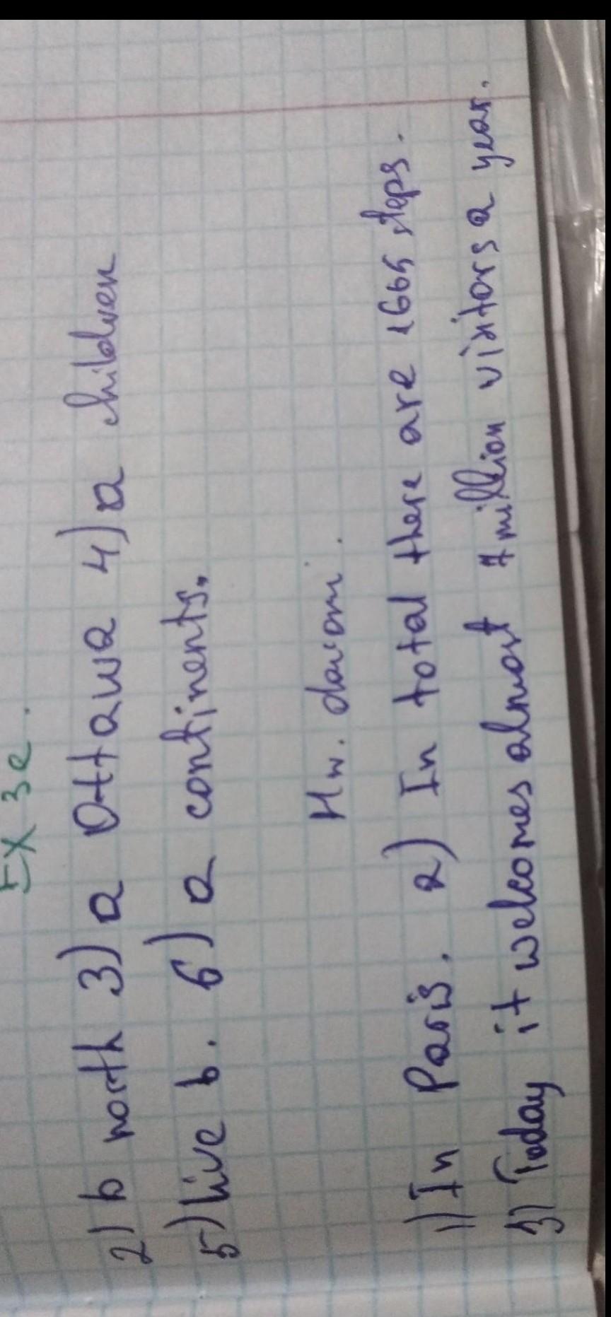 3 1.19 Listen again and answer the questions. 1 2 3 4 When did they arrive? How long have they been in Paris? How did they get to the top of the Eiffel Tower? Have they visited any museums? Have they done any shopping? 5 6 How's their French? 7 When is their last day? 8 What do they want to do on their last day? 2