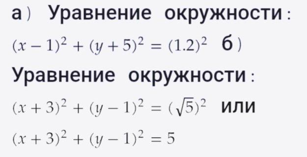 Составьте уравнение окружности, если :а) О(1,-5)- центр , r = 1,2. b) O(-3;1)- центр , r =√5