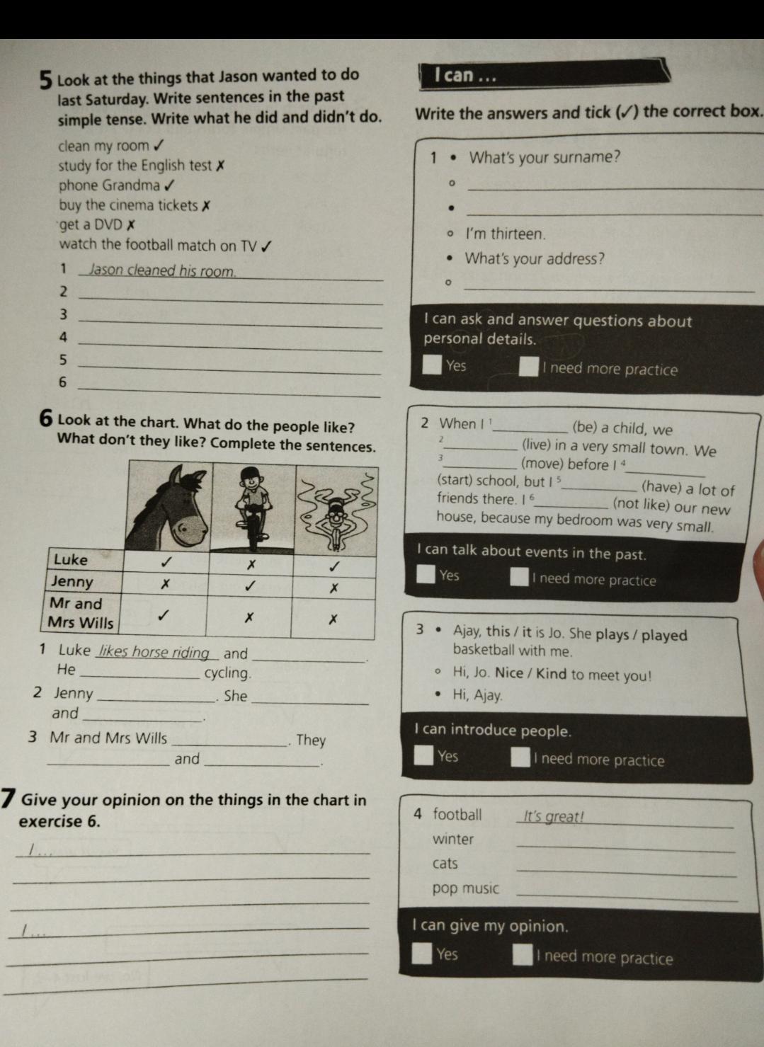 1) Luke likes horse riding and swimming. He doesn’t like cycling.