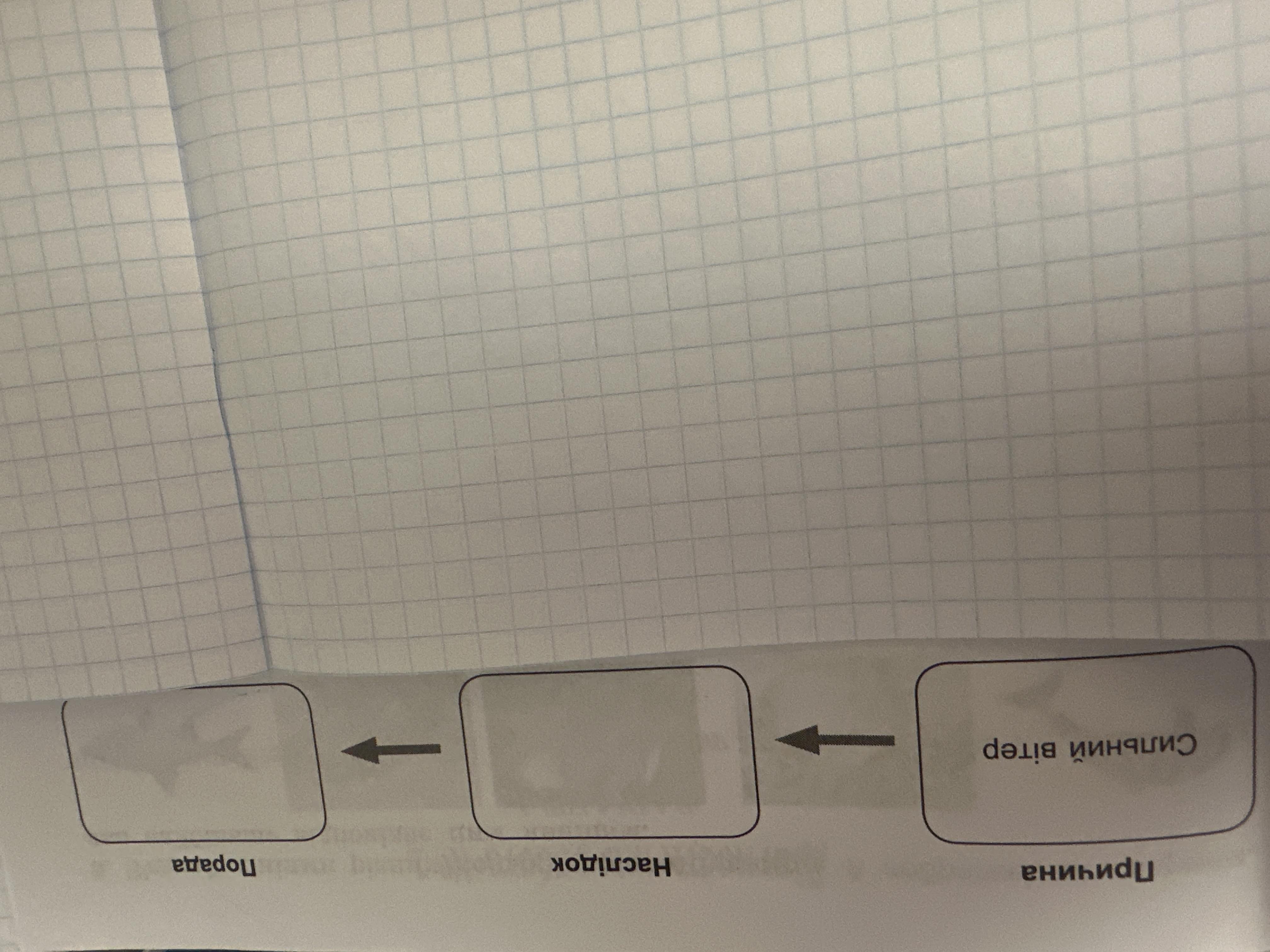 Установи причинно-наслідкові зв’язки і заповни логічний ланцюжок щодо зазначених процесів і явищ.