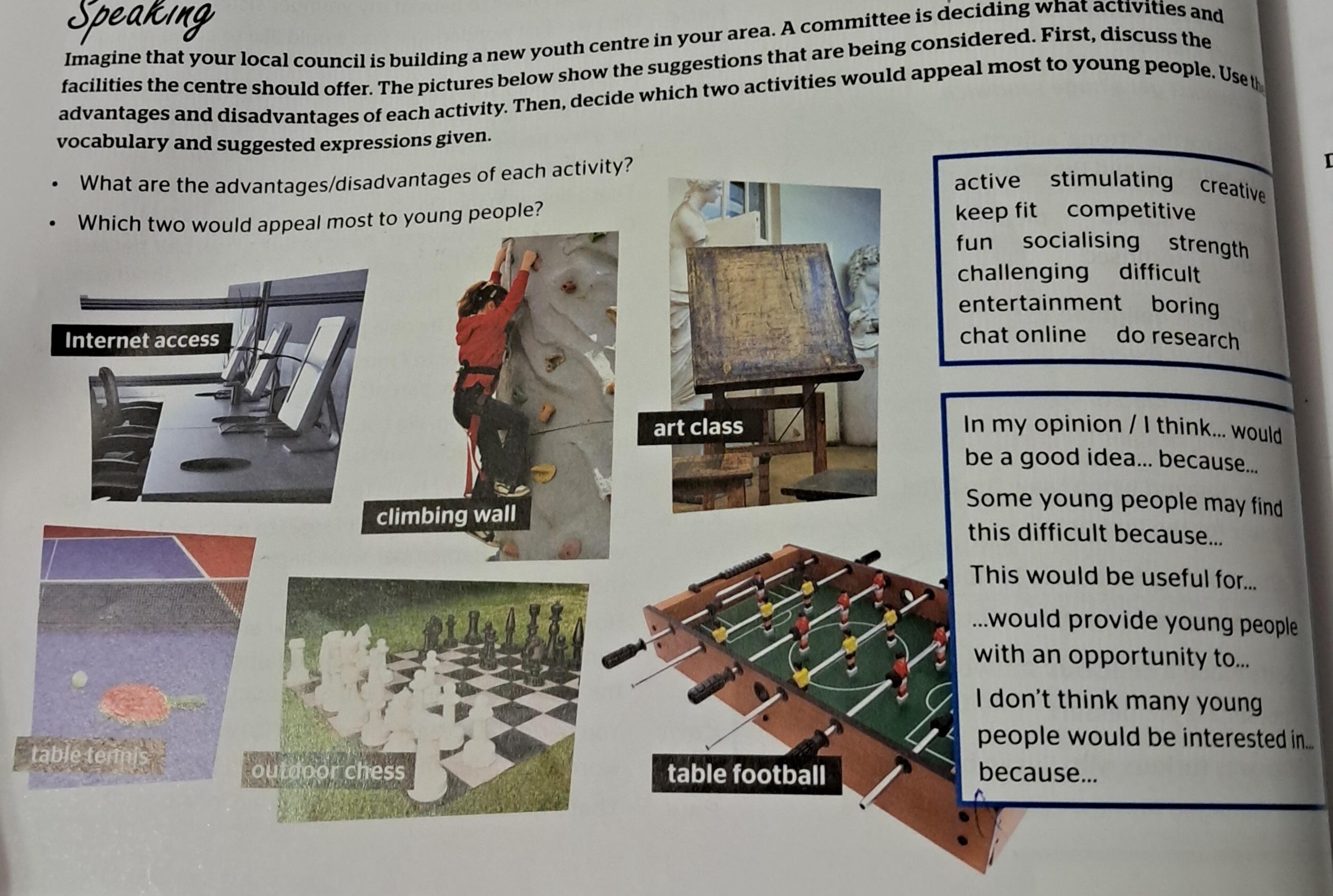 Перші речення до слова outdoor chess, а другі речення до слова table tennis