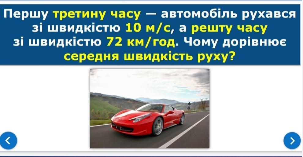 Першу третину часу - автомобіль рухався зі швидкістю 10 м/с, а решту часу зі швидкістю 72 км/год. Чому дорівнює середня швидкість руху? ( желательно расписать на листочке)