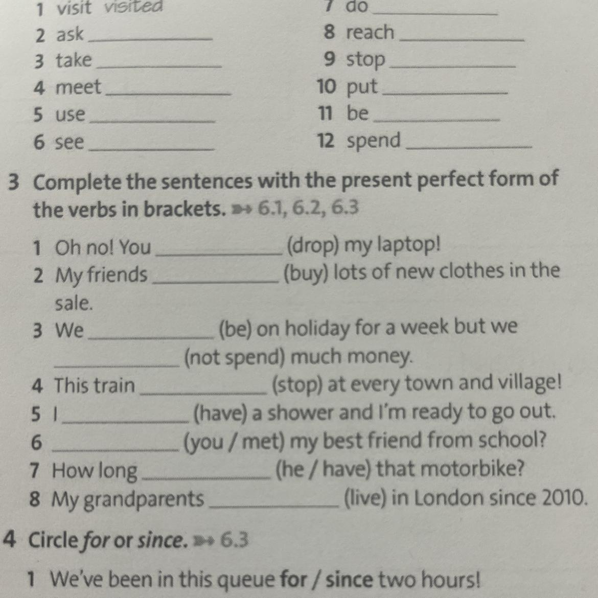 3 Complete the sentences with the present perfect form of