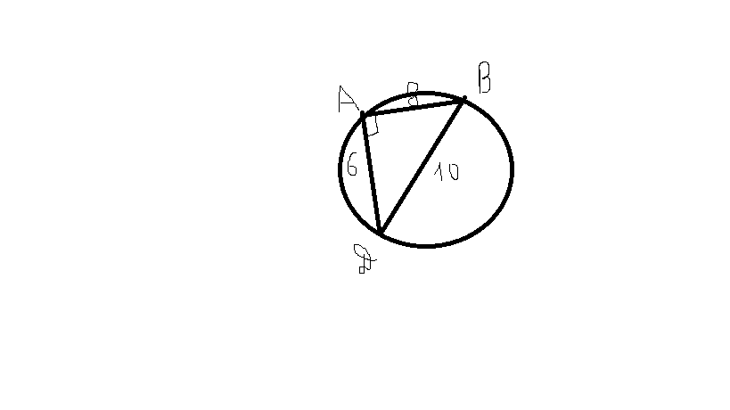 Угол ADB как вписанный и опирающийся на диаметр равен 90 градусов. Это свойство такое. Тогда получаем прямоугольный треугольник DAB. Найдем гипотенузу DB=10, по теореме Пифагора, DB-диаметр, значит радиус равен D/2=5. Площадь круга П * R ^2 = П * 25. Ответ: 25*П