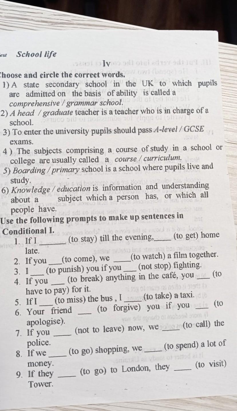 1) A state secondary school in the UK to which pupils are admitted on the basis of ability is called a **grammar** school.
